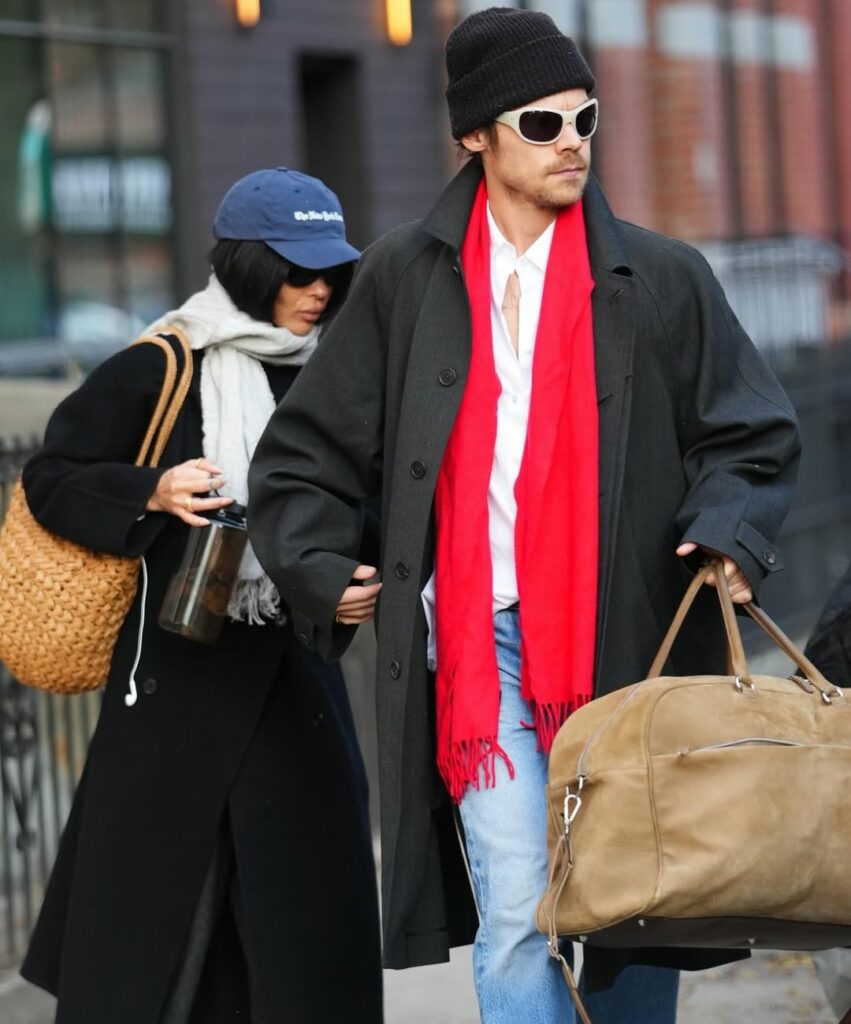 Recent sightings of Harry Styles and Zoë Kravitz in New York highlight a consistent approach to off-duty dressing. Their latest appearance at JFK Airport reflects a similar style, built around layered outerwear and practical accessories suited for travel.